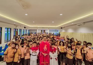 Kami mengadakan misa bulanan bagi yang beragama Katolik setiap bulannya.